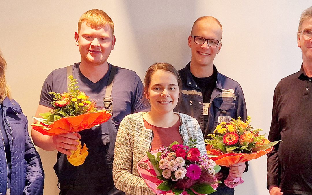 Im Namen der kompletten Geschäftsleitung beglückwünschten Adelheid Hauschopp-Francke und Gerd Francke die Winterabsolventen Nikolai Werner, Angelina Wedel und Flemming Hövener zum erfolgreichen Abschluss ihrer Ausbildungen.